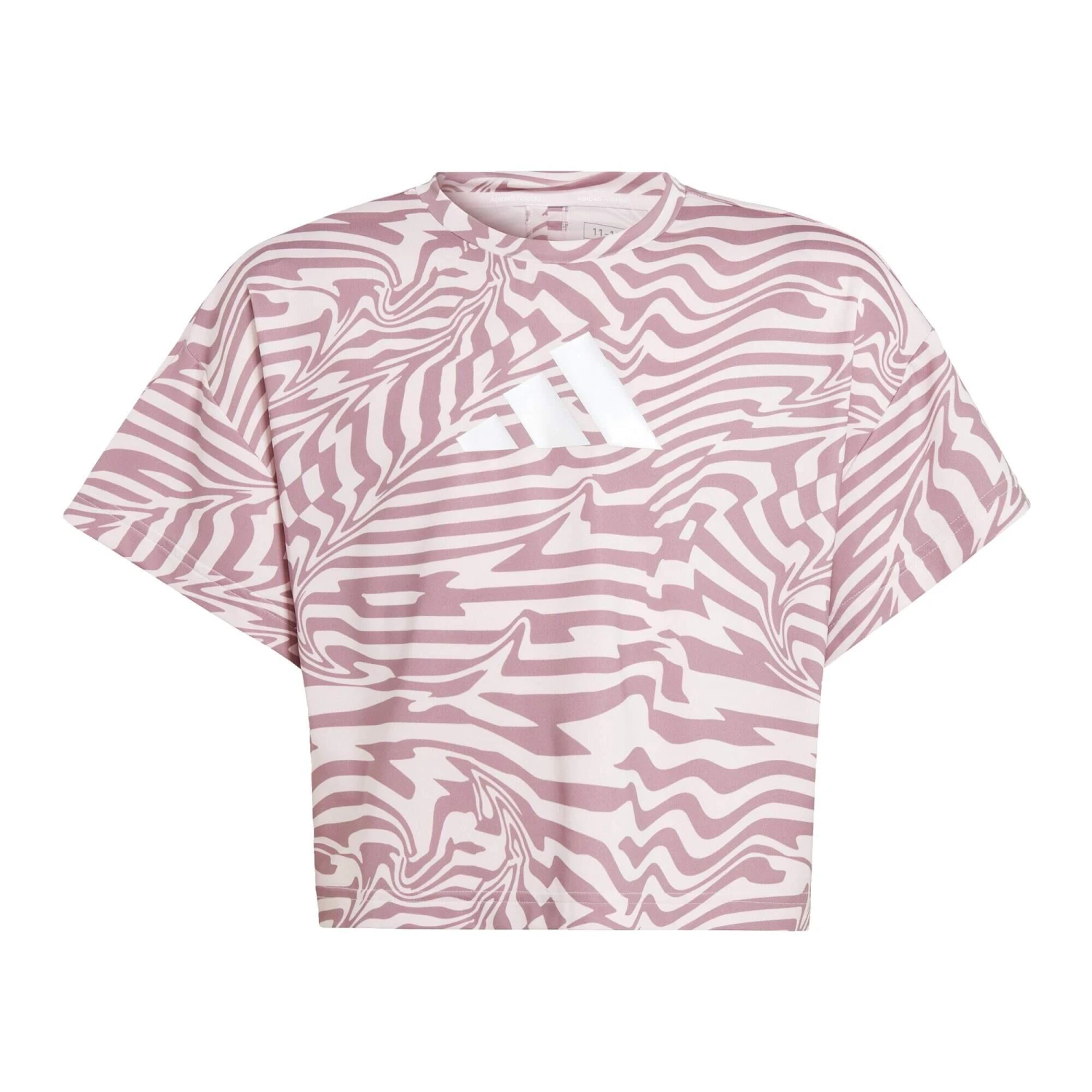 Teaming easily with everything in your closet from leggings to loose-fitting jeans, this juniors’ adidas tee lends itself to regular wear. You’ll want to show off its dynamic print at every opportunity. Lightweight, soft and made with AEROREADY technology to help you stay dry, it keeps you running around comfortably all day long. A classic adidas Badge of Sport completes the look.Made with a series of recycled materials, and at least 70% recycled content, this product represents just one of adidas’ solutions to help end plastic waste.